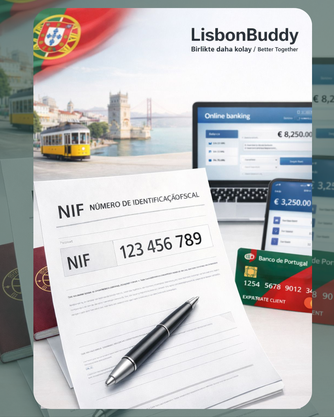 LisbonBuddy’de NIF başvurusu ve banka hesabı açılışı süreçlerini birlikte yöneterek Portekiz’deki finansal altyapınızı hızlı ve doğru şekilde oluşturmanıza yardımcı oluyoruz. Ve NIF belgenizi Lisbonbuddy’e özel promosyon koduyla %15 indirimle alabiliyorsunuz.
